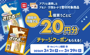 雪印メグミルクの対象商品を1個買うごとにチャージクーポンがもらえる! アルゾ・万惣・マルシェーと雪印メグミルクのコラボキャンペーンが開催中! 対象の商品をアプリと連携したアルゾ・万惣カードで買うだけ!期間中何度でも、1個 […]