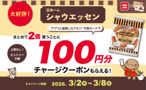 シャウエッセンをまとめて2個買うだけで100円分のチャージクーポンがもらえる! アルゾ・万惣・マルシェーとシャウエッセンのコラボキャンペーンが開催! 日本ハムとのコラボキャンペーンが登場!対象の商品をアプリと連携したアル […]