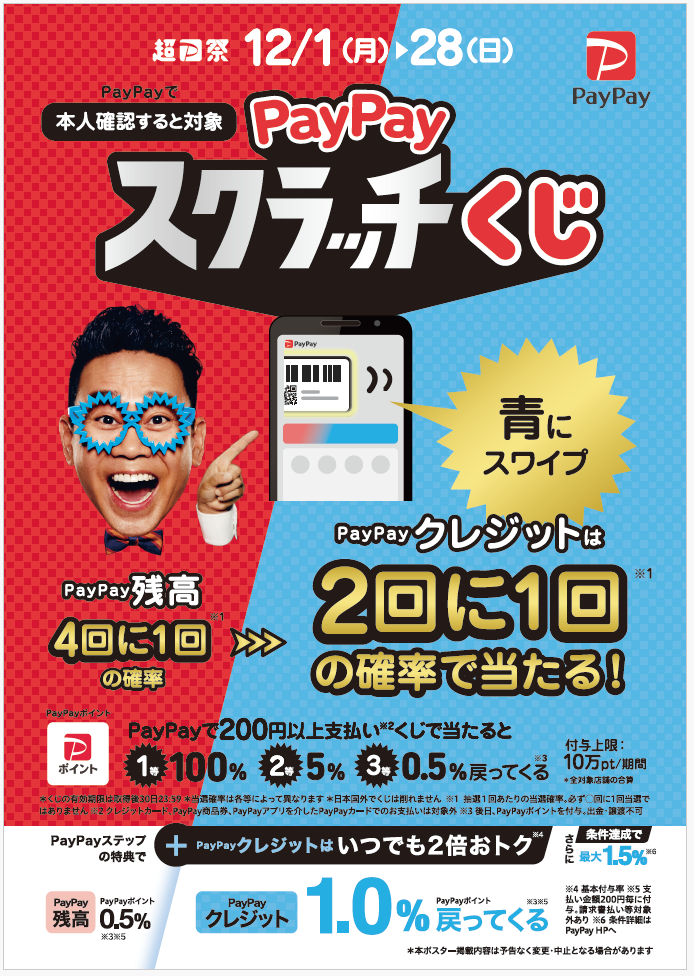 本人確認をすると対象に!さらにPayPayクレジットからのお支払いなら2回に1回の確率で当たります!