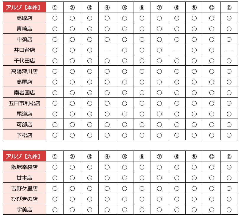 ◯:あり ・ ―:なし