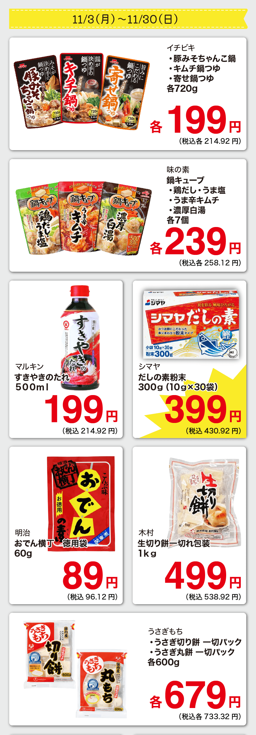 【九州版】 11月のお買い得商品のご紹介(10/27〜11/30)
