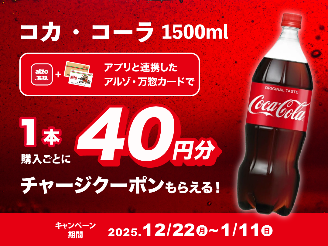 コカ・コーラ1500mlを1本買うと40円分のチャージクーポンがもらえる!
