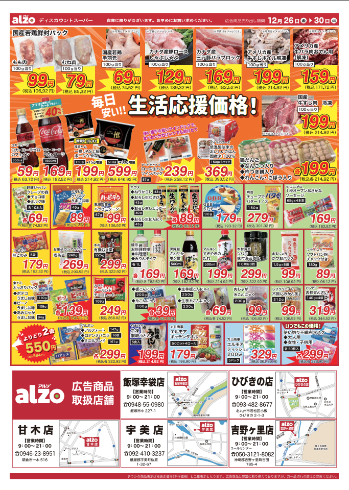 飯塚幸袋店・ひびきの店・甘木店・宇美店・吉野ケ里店