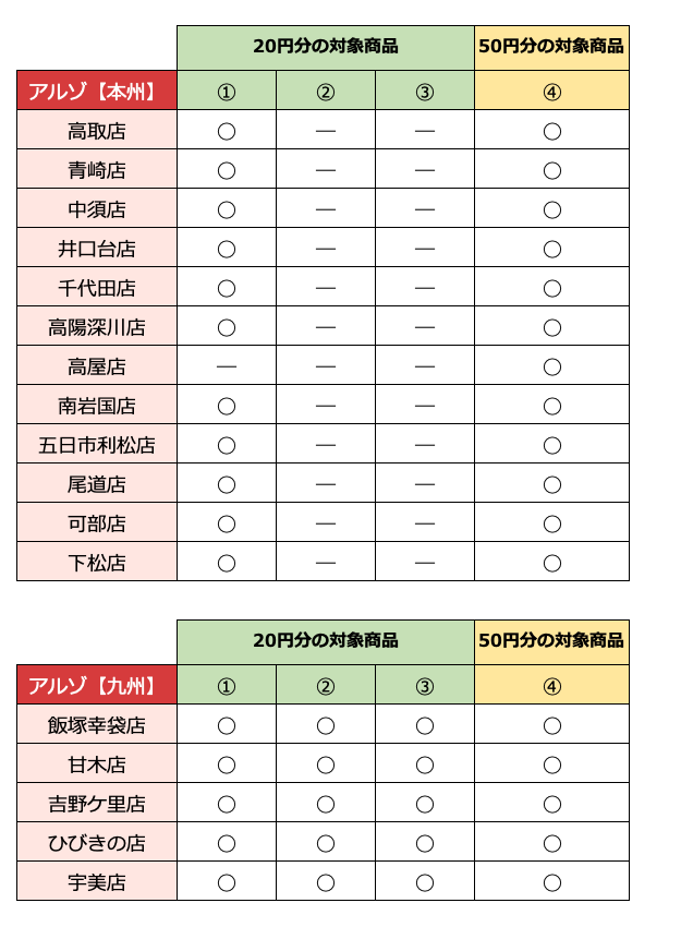 ・アプリと連携していないアルゾ・万惣カードでご購入いただいた場合は、クーポン配信の対象とはなりません。