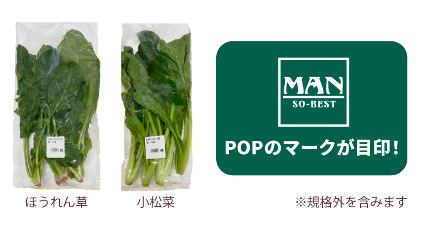 対象野菜B:MANSO−BESTほうれん草または小松菜(規格外を含む)いずれか1点を