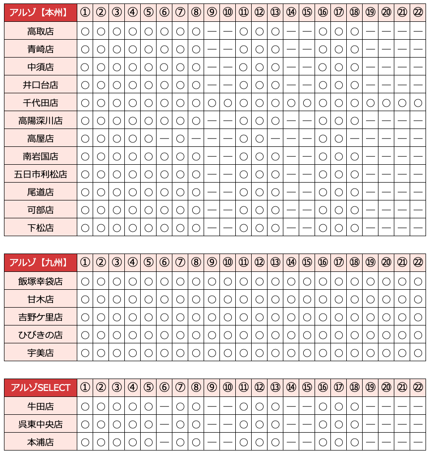 ・アプリと連携していないアルゾ・万惣カードでご購入いただいた場合は、対象とはなりません。