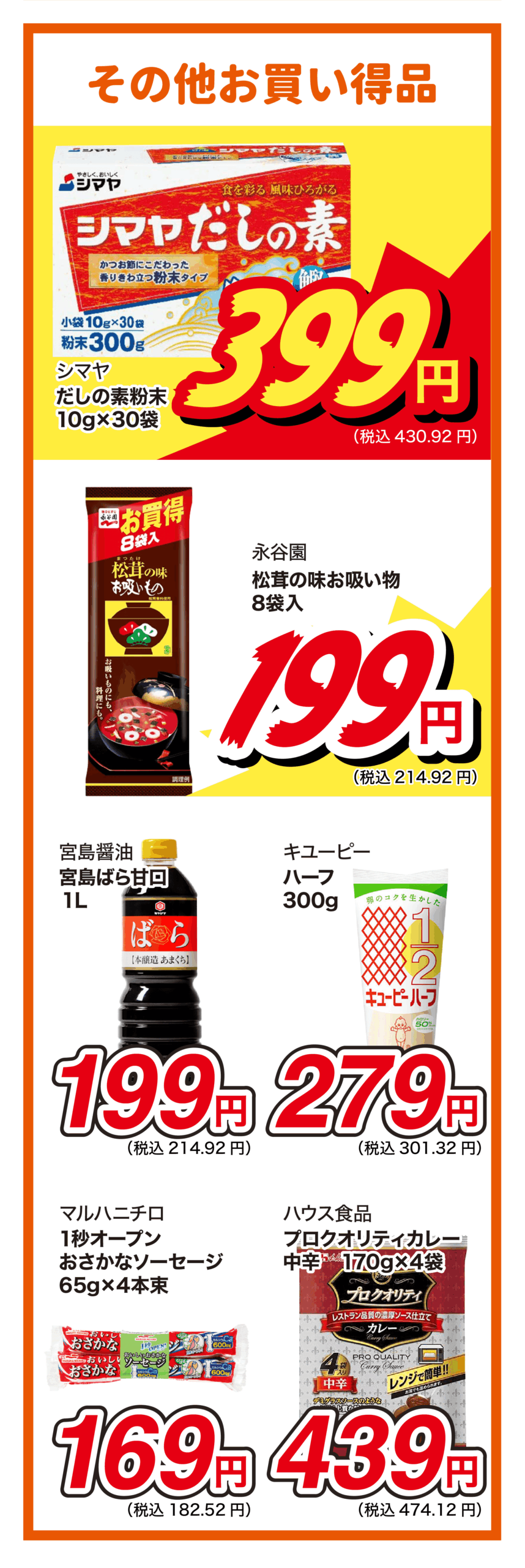 ふだんの食事に嬉しい食材を各種お安く取り揃えています!