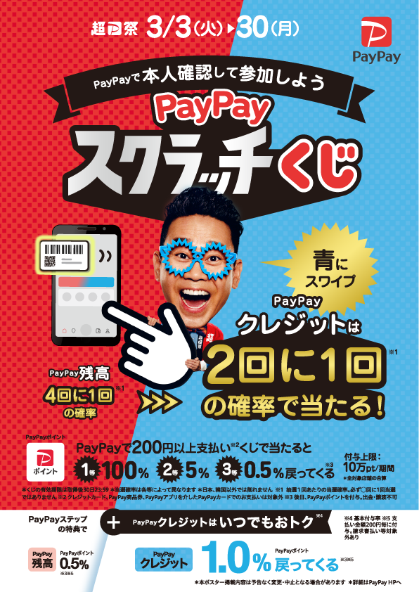 超PayPay祭開催!削って当てようスクラッチくじ!(3/3〜3/30)