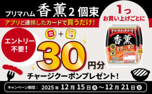 香薫2個束を1つ買うと30円分のチャージクーポンがもらえる! アルゾ・万惣・マルシェーとプリマハム香薫のキャンペーンが再び開催! 対象の商品をアプリと連携したカードで買うだけ!1つ買うと30円分のチャージクーポンがもらえ […]