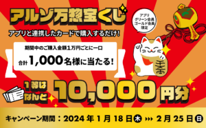 買い物するだけで10,000円分のチャージクーポンが当たる!? 2024年1月18日(木)〜2月25日(日)の期間限定開催!お買い物をすると抽選で豪華景品が当たります! 参加条件はアプリと連携したアルゾ万惣カードでお買 […]