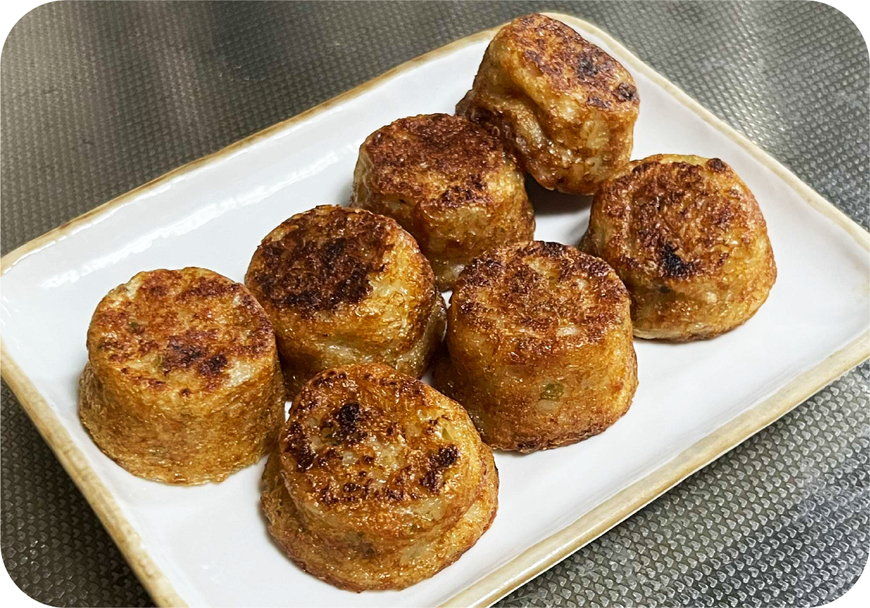 冷凍のまま揚げれば、揚げたこ焼きの出来上がり。
