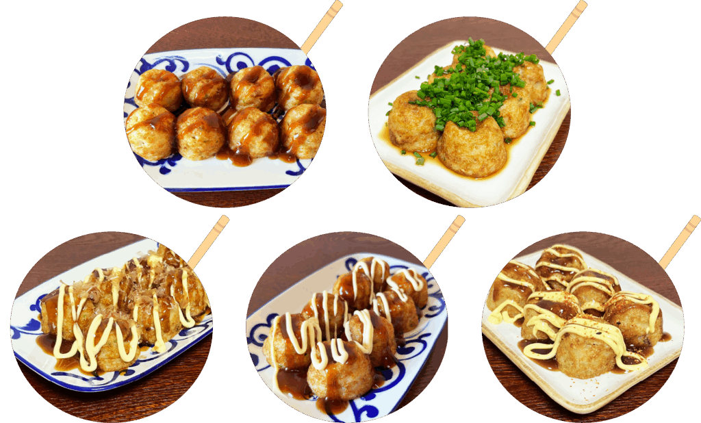 ソース&マヨネーズの王道から、ポン酢や七味マヨまで。